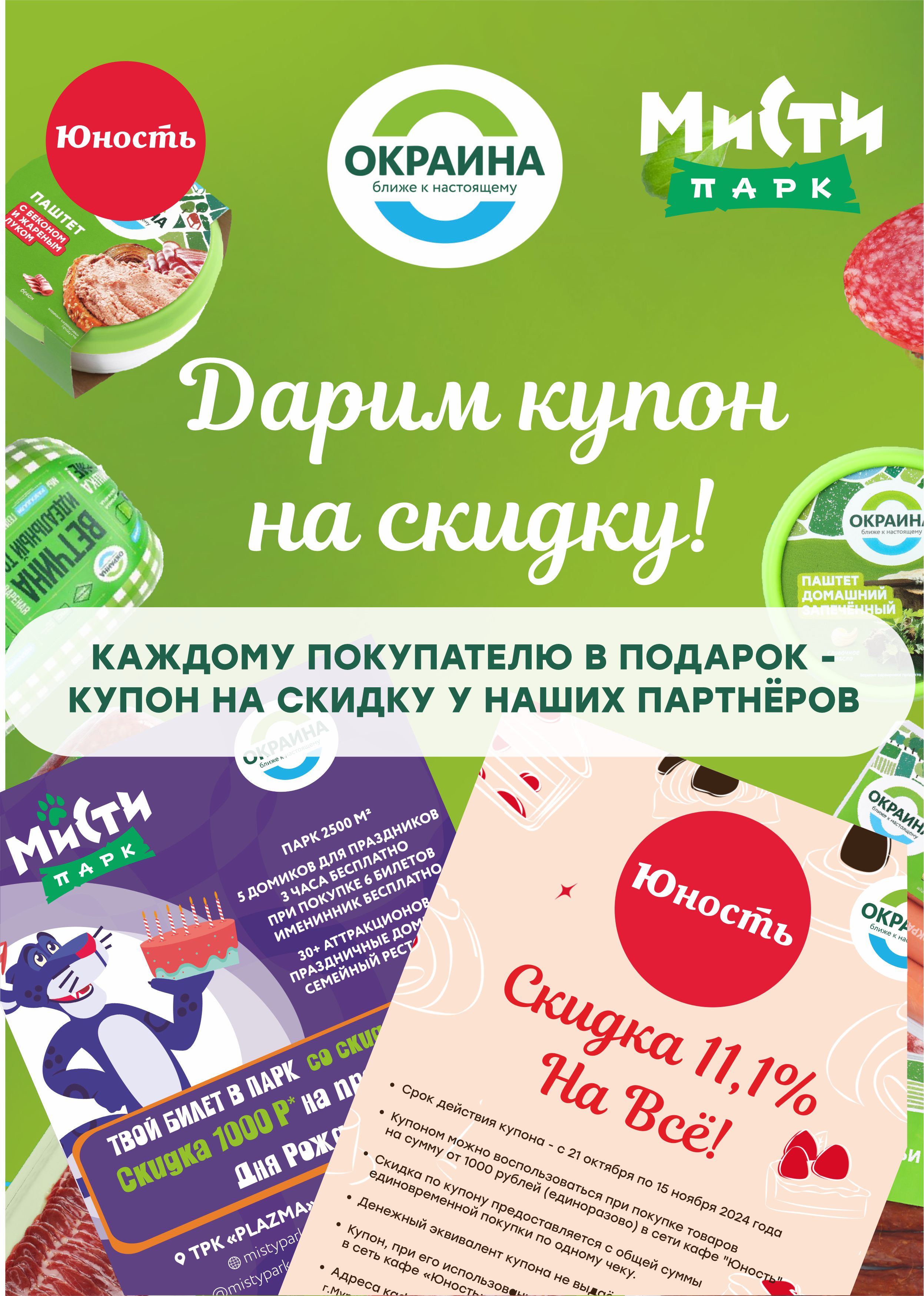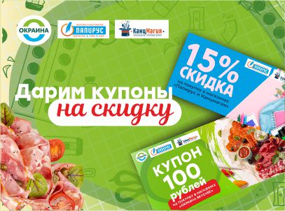 Каждый покупатель магазина «Папирус» и «КанцМагия» получает купон со скидкой 100 ₽ в магазины сети «Окраина вкуснее».