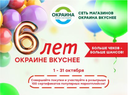 - совершить покупку любой продукции «Окраина» (кроме продукции сторонних производителей) на сумму от 1000 руб.
