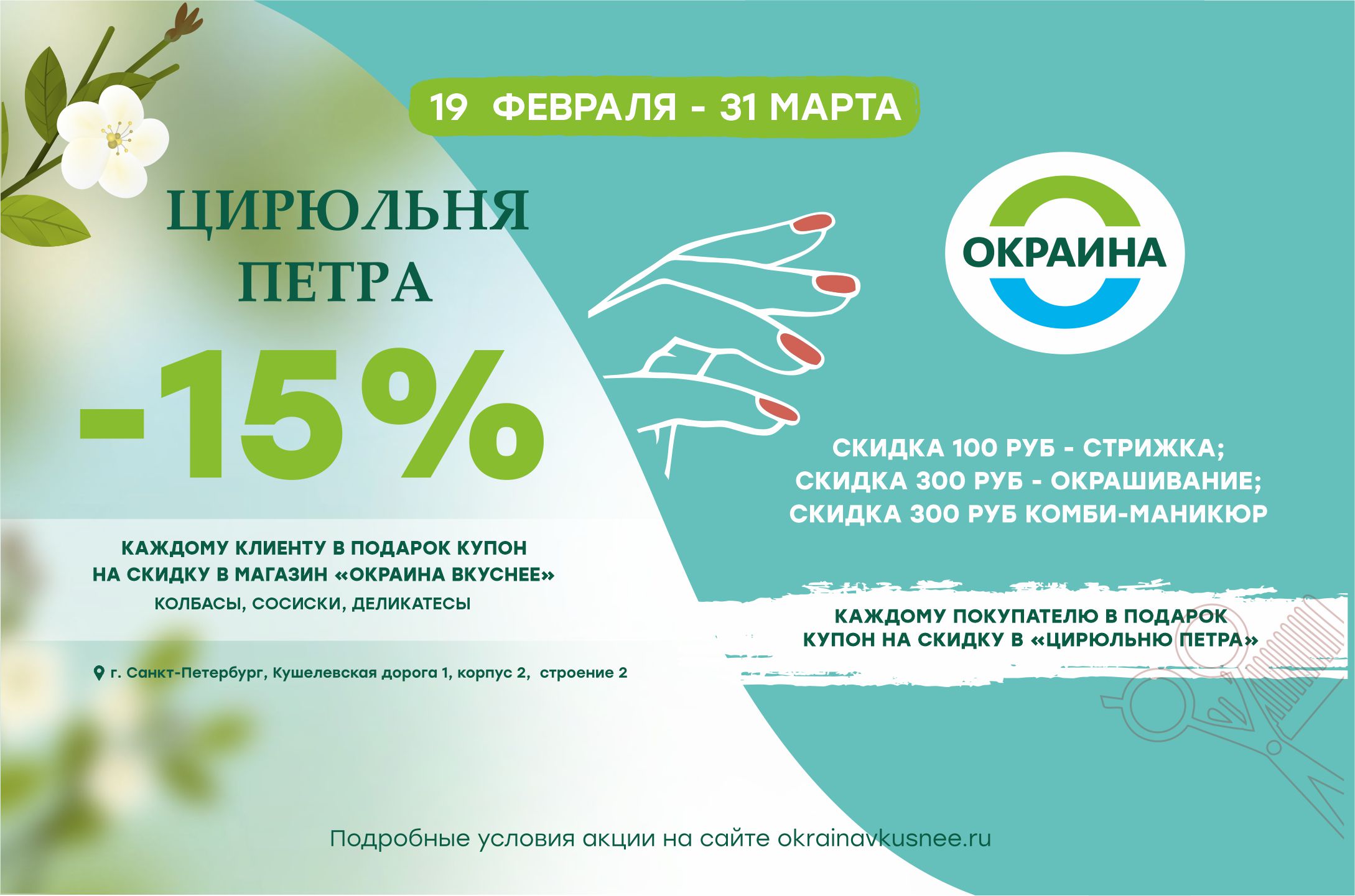 При покупке нашей вкусной продукции вы получите купон на скидку в сеть парикмахерских "Цирюльня Петра".