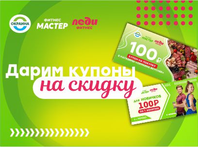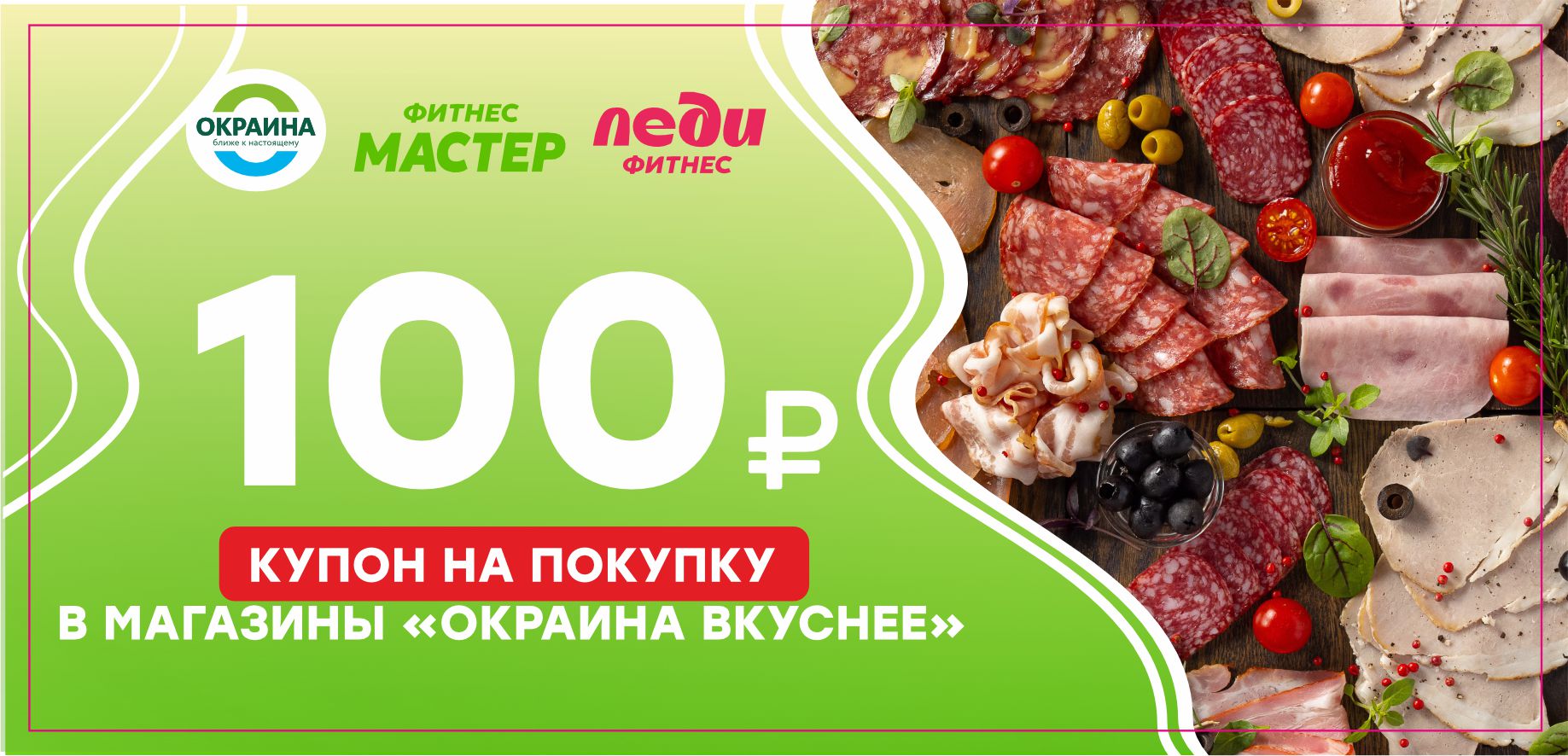 Каждый посетитель «Фитнес Мастер» и «Леди Фитнес» получает купон со скидкой 100 рублей в магазины «Окраина вкуснее».
